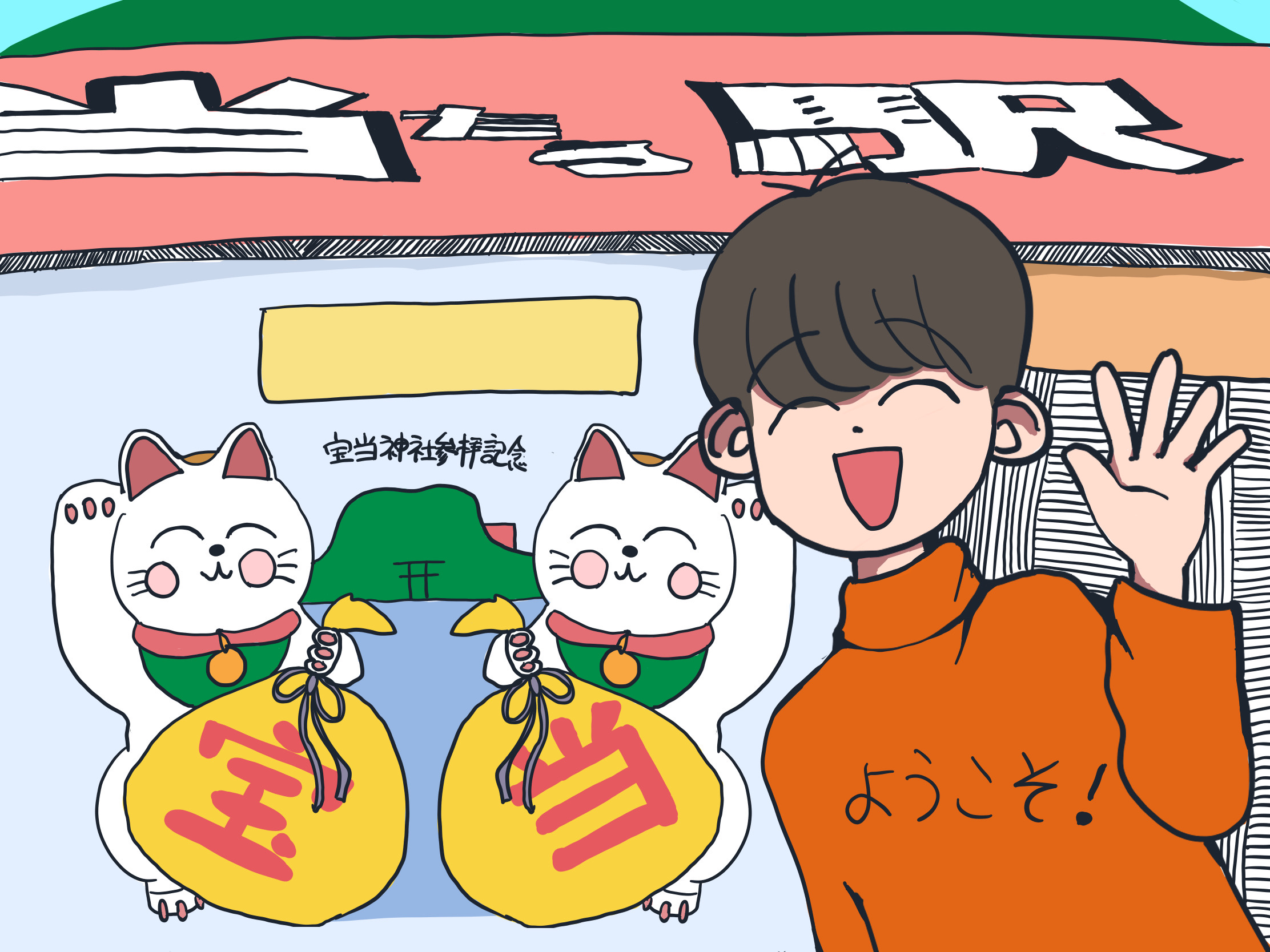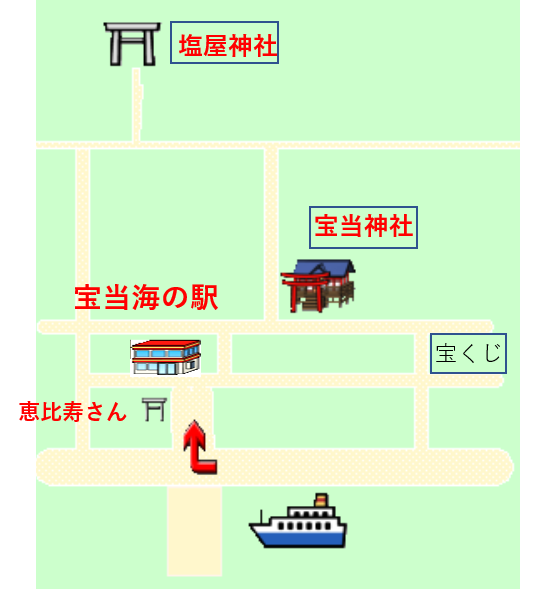ようこそ、高島・宝当海の駅へお越しいただきました。開運宝当袋は、袋の中に神社の運気を詰めてお持ち帰りいただく縁起物です。初めてのお客様は神社ご参拝の前にお立ち寄りください。